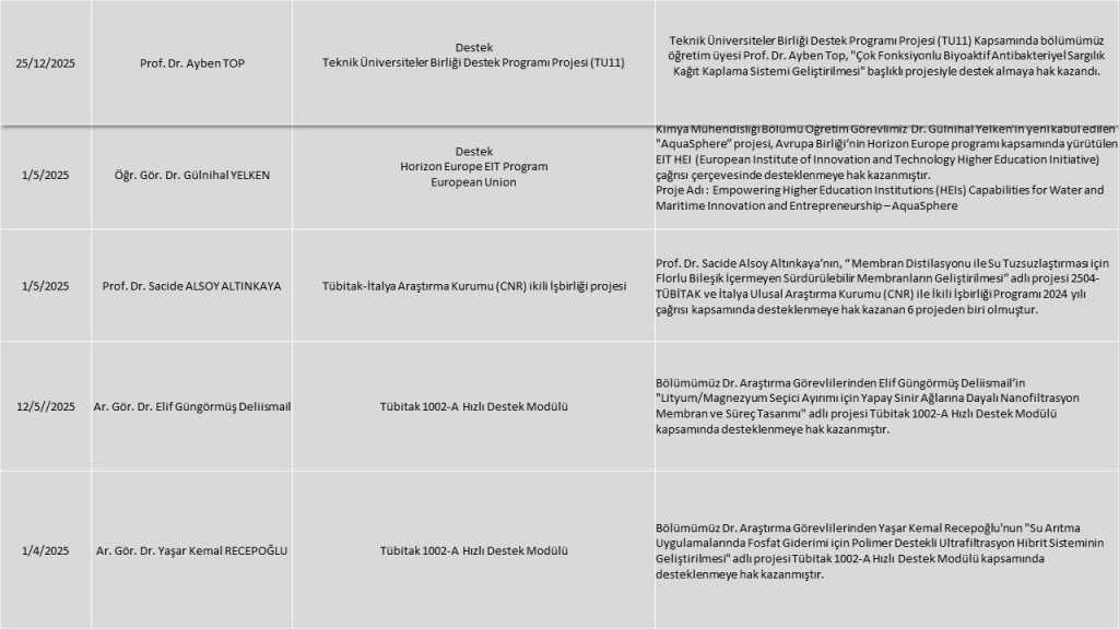 BÖLÜM ÖDÜL / PROJE / PATENT LİSTESİ