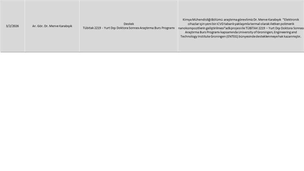 KİMYA MÜHENDİSLİĞİ BÖLÜMÜ